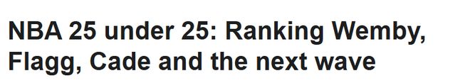 - 后浪来袭!ESPN评25岁以下25大球星:文班亚马居首火箭3人上榜